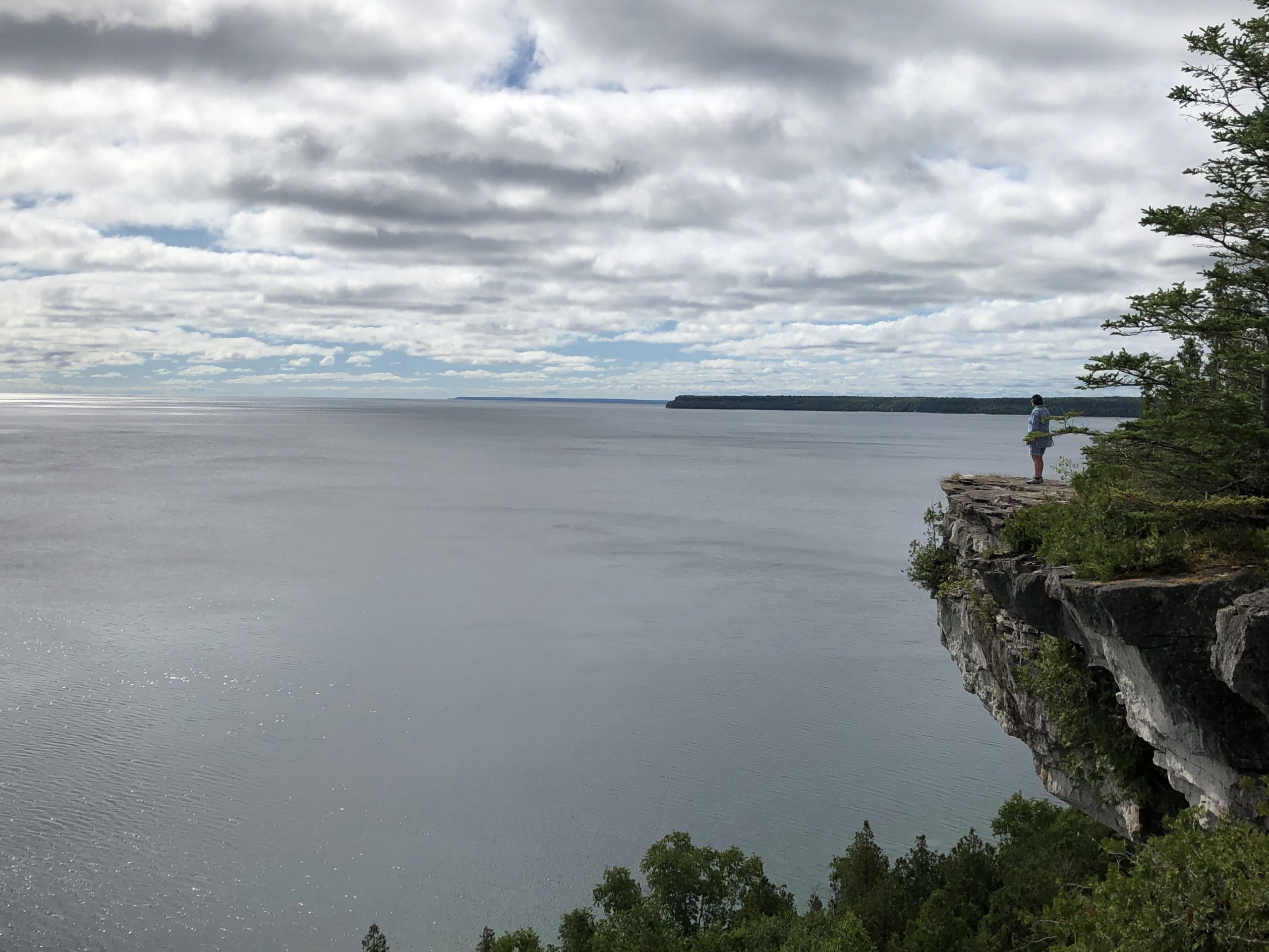 jane on a ledge ← Previous Next → That’s me, out on a ledge. Jane stands on a ledge overlooking Georgian Bay from the Bruce Trail
